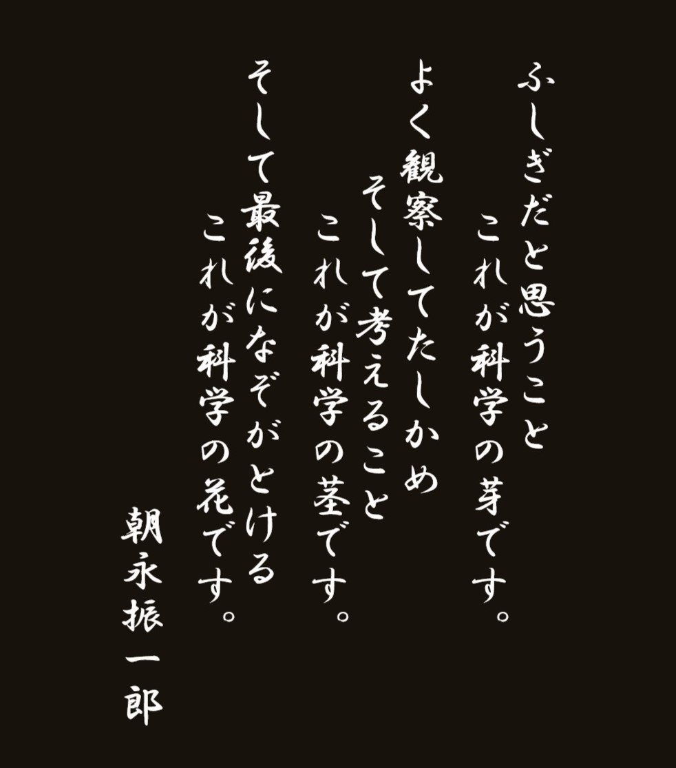 小林良彦 こばやしよしひこ En Twitter ふしぎだと思うこと これが科学の芽です よく観察してたしかめ そして考えること これが科学の茎です そうして最後になぞがとける これが科学の花です 朝永振一郎博士の名言の一つです 科学 という営みの尊さを感じる